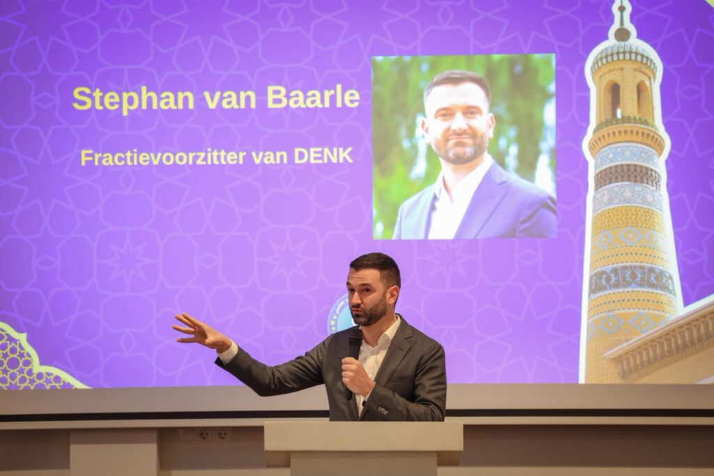 بۇ ئىپتارلىق پائالىيەتتە يەنە DENK پارتىيىسىنىڭ رەئىسى سىتېۋېن فەن بارلا (Stephan van Baarle) بىلەن ئۇيغۇرلارنى قوللاپناھايتى مۇھىم  سۆز قىلدى. ئۇنىڭ بىلەن يەنە يۈزمۇيۈز سۆھبەتتە بولۇش ئىمكانىيتى بۇلۇپ ئۇيغۇرلارنىڭ نۆۋەتىكى ئەھۋالى ئاڭلىتىلدى. مانا بۇ پۇرسەتتىن پايدىلىنىپ مەن ئۇنىڭغا 2-ئاينىڭ 14-كۈنىدىكى خىتايلارنىڭ چاغان بايرىمىدا مېنىڭ تىنچ شەكىلدىكى قارشىلىق كۆرسىتىش ھەرىكىتىمگە قارىتا ئېلىپ بېرىلغان ۋەھشىيلەرچە چىگىرا ئاتلاپ باستۇرۇش ئېلىپ بارغانلىقىنىڭ دەلىل-ئىسپاتى بولغان نەق مەيدان سىننى Xسۇپىسىدىن يۇيۇۋەتكەنلىكىنى ئاڭلاتتىم.